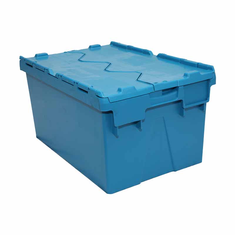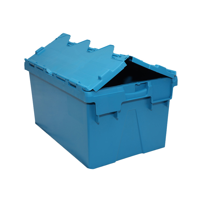 1. 物流箱為可插式、帶連體外翻箱蓋;把手搬運舒適,空箱套入時,把手在外。